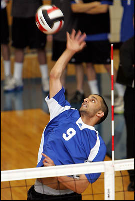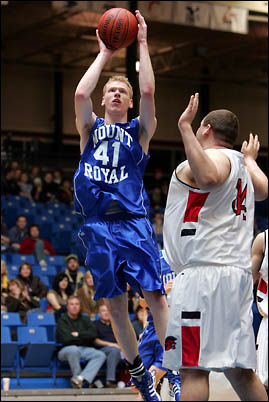 Mount Royal Cougars volleyball teams against MacEwan College.