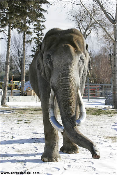 Today I had a very interesting assignment. I was hired by the Calgary Zoo to take some shots of elephants. They wanted to have front and rear shots of the male elephant. The photographs would be used for a kiosk in the new Elephant Crossing building. They wanted to have life size prints that would look good up-close. They didn't really care about the background because they will cut the elephant and paste it to a different background, but they did care about them being able to print it life size, about 12ft. I had to rent a camera with a higher resolution for this and hopefully they got what they asked for and it would be interesting to see it when its all done.