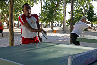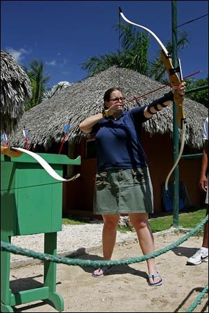 Well, we started our vacation with the usual routine, me getting sun burnt (at least the weather is fine and there are no huricanes). We spent the day at our resort, the water in the ocean is great! My dad and I signed up for a table tennis tournament, after kicking his butt I moved on to lose to a guy who ended up being the champion. We tried our skills at some archery, although I loved it very much, we found out that I don't really have any skills in that. There is not as many restaurants as we had on our last trip but the food is good and we are having a good time! |