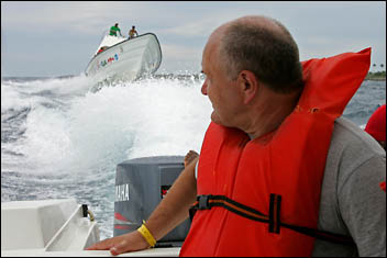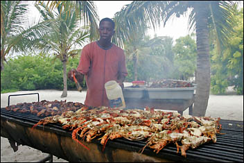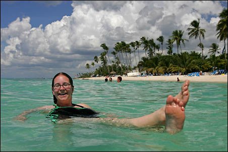 Knowing Sergei, the cooking of the meat (chicken and lobster), was the most fascinating part, and a picture he had to have. After lunch we simply walked along the beach, enjoyed the surroundings (while swatting at swarms of mosquitoes--another not so grand attraction of this island) and went snorkeling. I must say for myself, the speed boat ride to and from the marina in La Romana was probably the most enjoyable part. |