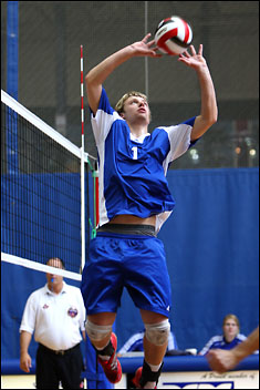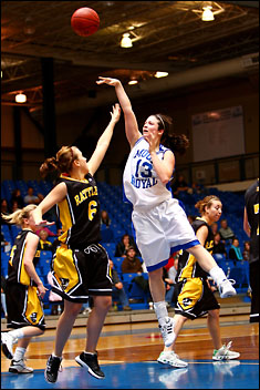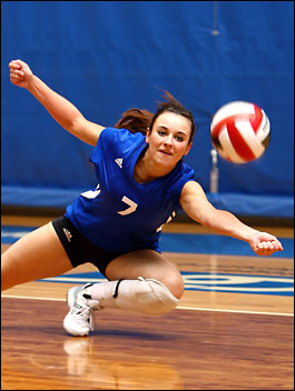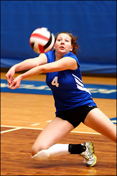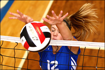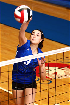 Mount Royal College girls volleyball action.