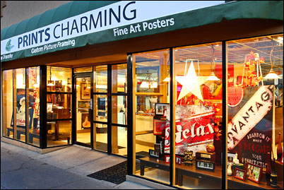 Prints Charming, a custom picture framing and fine art poster store. A couple of days ago I had a job to photograph the interior of the store and this evening I finished up the job with a couple of shots on the outside.
