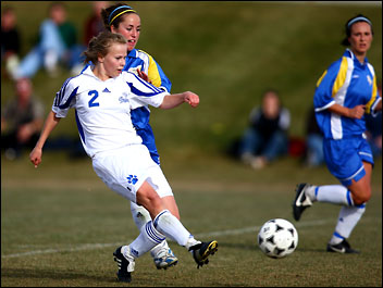 Above you can see #2 Kim Kuiper, of Mount Royal Cougars, scoring the only goal of the game at the end of the second half.