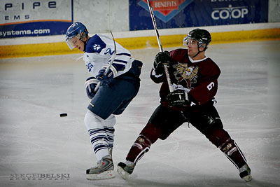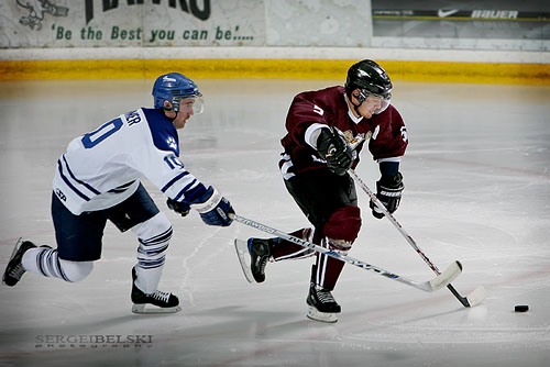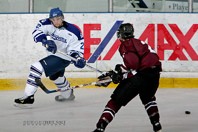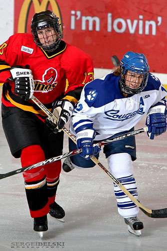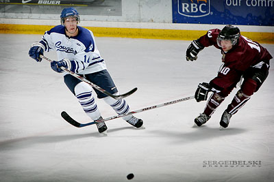 I just came home from my first hockey game of this season. My main camera is still in repairs so I had to use my backup, Canon 1D Mark II. It took me about 5 or 10 minutes to get used to it but its still a great camera! Tonight Mount Royal Cougars played against MacEwan Griffins. Cougars won 3-2 and it was an entertaining game. Griffins team had a girl for a goalie and she was fantastic, she made 45 or so saves and was a player of the game for the Griffins.