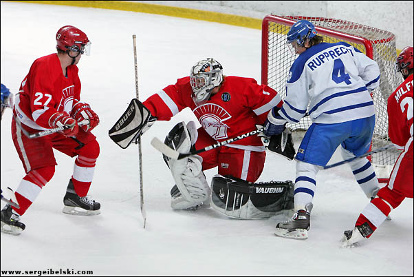 This evening I photographed a hockey game. Mount Royal College Cougars played against SIAT Trojans. The game ended in a 2-2 tie at Centennial Arena.