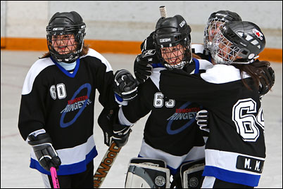 I purchased a new Canon 1D Mark III not a long time ago and I think I maybe having some problems with autofocus. I have a tournament coming up next weekend and I'm trying to decide if I should use my new camera or use my Canon 1D mark II. Today I used both cameras for these games and tried to compare the results. Mark III did better with colors, was easier to use the bigger LCD screen and I think they both focused equally, so I'm pretty sure I will use Mark III for my upcoming ringette tournament.