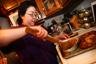 Tracy and I were invited for a little pizza and movie party at our friends Sergey and Maple's house this evening. We had a Coco Brooks Pizza and watched a couple of movies - Good Luck Chuck and The Simpsons Movie. I really liked the Good Luck Chuck, I thought it was funny. The Simpsons Movie was pretty good but it wasn't anything special from The Simpsons show. We had a great time and I loved playing with their big cat Cleo.