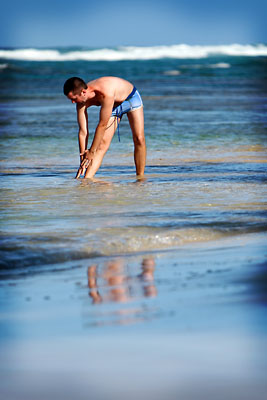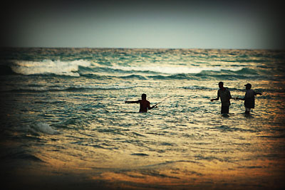I was walking around the resort, looking for some nice spots to take photos at and than I saw some local men fishing at the sunset in the ocean. My photojournalistic instincts took over and I tried to get some shots of them. I had my backpack on my back and was about knee deep in the water when a big wave came and covered half of my backpack. Luckily my laptop, that was on the bottom of my backpack is still working :) |