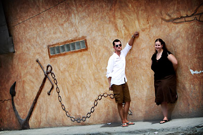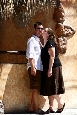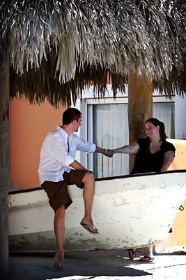 It was a very long day for us. Today Tracy and I did some engagement photographs. All photographs I took myself on the tripod, using Pocket Wizards. Of course it didn't come out as good as it could if I were to photograph someone else, where I would be able to hold the camera and see and compose the shot, but it worked out pretty good anyway. I tried to hide it but if you look closer you can probably see the pocket wizard in my hand on some of the photos. For the photographs we drove out to a small town about 40 minutes away from our resort and my sister was able to come out with us to keep us company. By the end of the day we all were pretty tired but had a great time! |