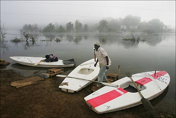 We stopped at a severally flooded area, Monegue, where a whole village is now underwater due to hurricane Ivan. You can see my photo of some boats that people use to get to the other side of the water where some houses are not yet covered by water. The water levels are still rising and no one really knows why.