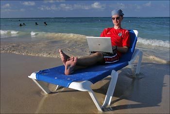 This morning we took a cab ride to Ocho Rios, the closest town to our hotel. The main goal was to find an Internet cafe so I can plug in my laptop and upload some news and see my emails. I don't know why, but they don't allow to connect laptops, you are only allowed to use their computers. We got lucky though, after playing around with the hub I found a way to plug my laptop in and was able to use it.