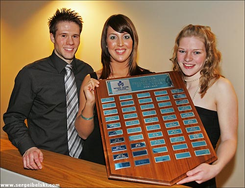 Red and White Club, March 30, 2006: Mount Royal College Cougars Chelsea Hobbs (volleyball) and Kristy Lachapelle (badminton) were named co-recipients of the Al Bohonus Female Athlete of the Year award while Brody Hilland (badminton) received Male Athlete of the Year.