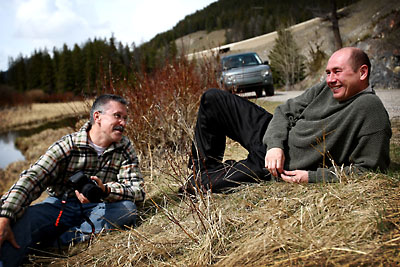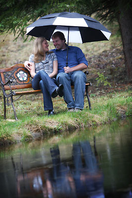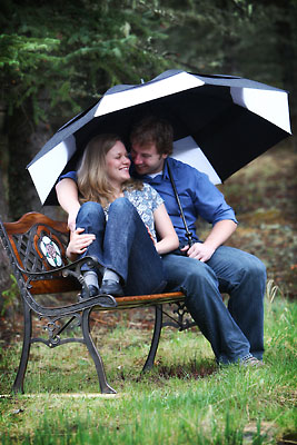 I just got home from an engagement photo shoot. Its been raining for a couple of days straight in Calgary, so the weather wasn't ideal for photographs, but Darcie and Gerard did awesome and were not afraid of getting a little wet :) We did photographs at Darcie's parents cabin and they invited my wife and I to stay for dinner so it was great! We had a wonderful time and it was great to spend some time in the woods, even if it was raining!