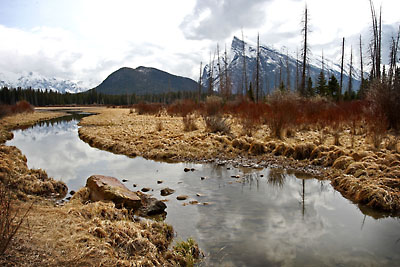 Yesterday a couple of my friends and I spent the day at Banff National Park. The weather was very good, nice and warm. I was expecting to see more snow, but instead we could feel that the spring was coming. The sky didn't cooperate with us for any great landscape shots but we had a fun time.
