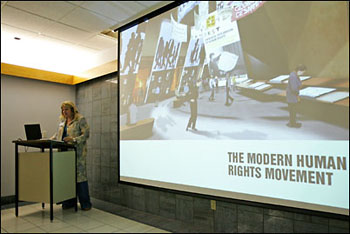 On April 20, 2007, Prime Minister Stephen Harper announced an agreement towards establishing the Canadian Museum for Human Rights as a federal institution to be located in Winnipeg, Manitoba. Today I photographed a Powerpoint presentation event about the Museum and its progress.
