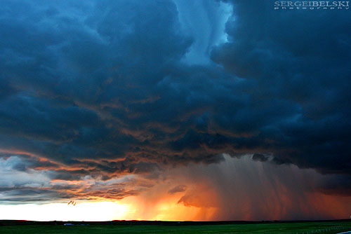 I have never seen this before. My wife and I went out for supper and a movie tonight and on our way home this is what we saw. It was pretty cool, on one side it was a very nice sunset but just to the side of it the storm was happening. I never seen a nice sunset and a lighting all in one before.