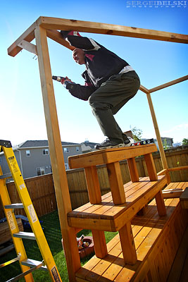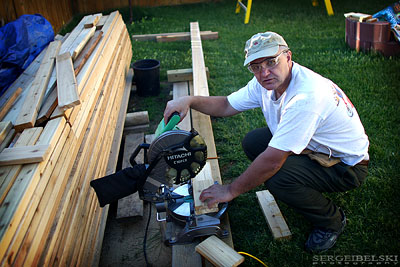 Here are a couple of photos of my hero, my dad. For the last two days my dad and I have been working on my deck around the clock. Unfortunately I have a sprained ankle so my dad has been doing most of the work. Its going slowly but every hour it looks better and better. I'm getting ready for a wedding tomorrow so we will take a break from the deck building for a day.