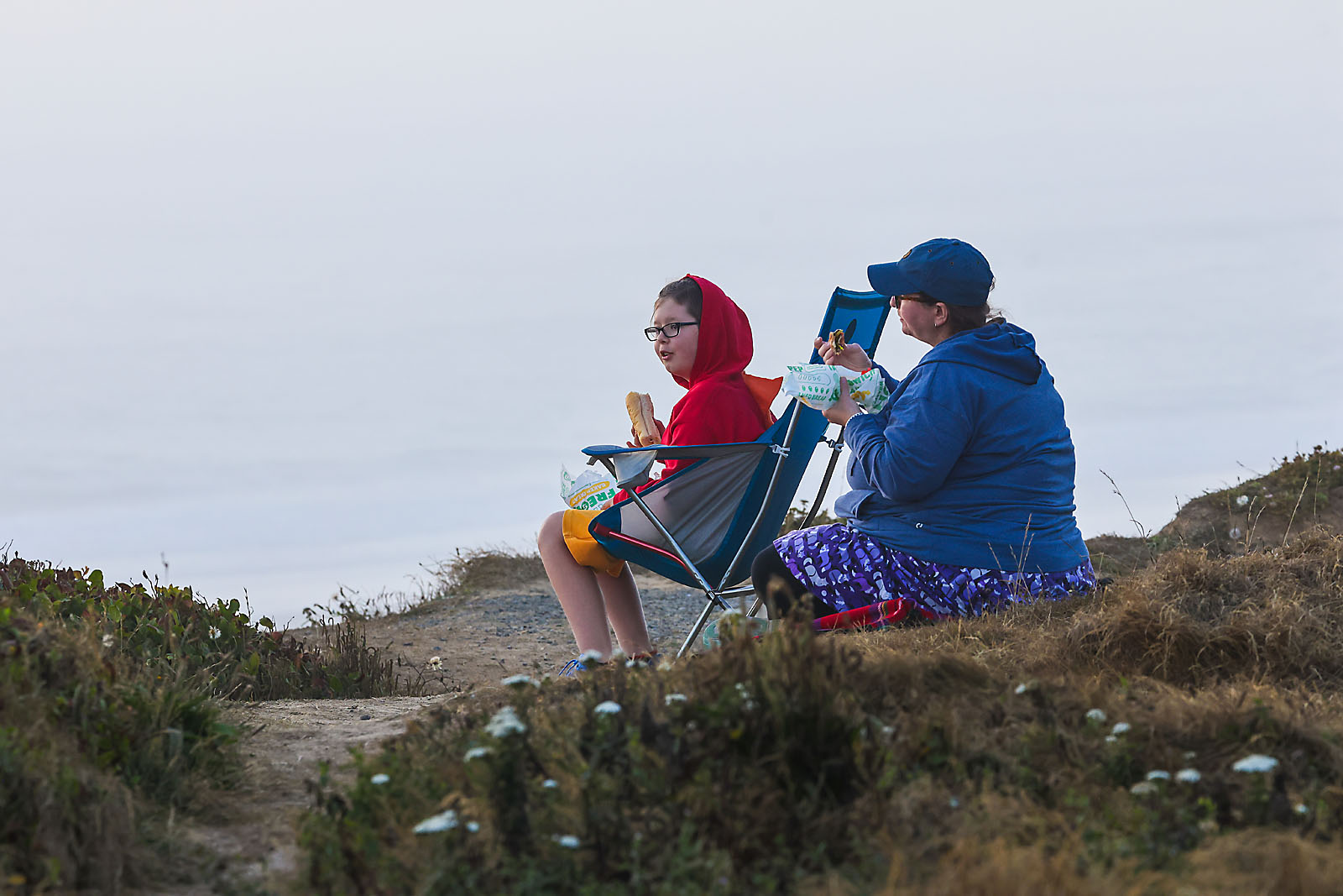 We did some whale watching (from very far) and enjoyed the sunset until the fog came and took over the coast. |